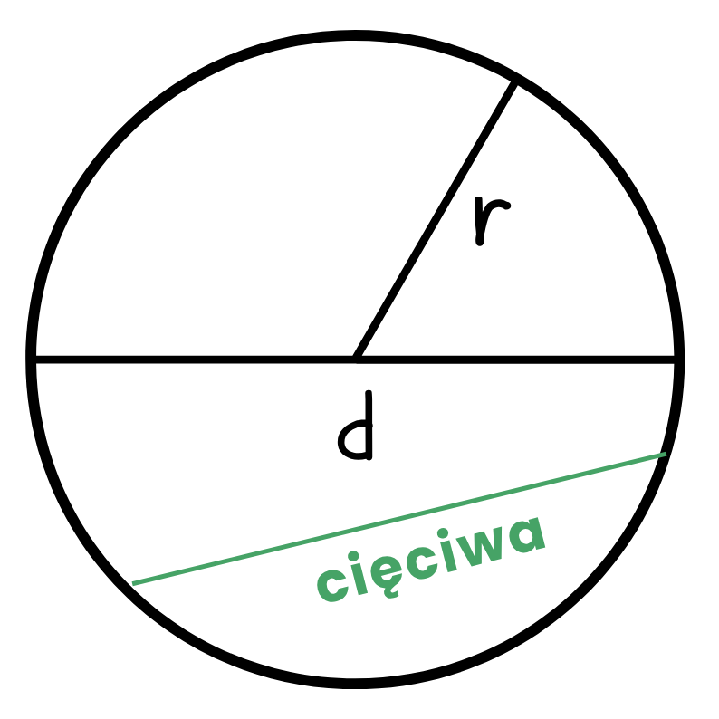 - Cięciwa - odcinek łączący dwa punkty leżące na okręgu