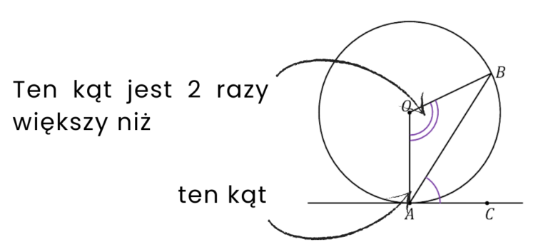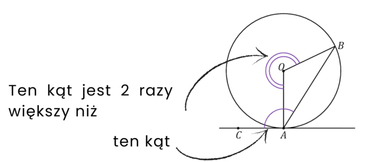 Miara kąta wpisanego jest równa połowie miary kąta środkowego (2a), opartego na tym samym łuku.