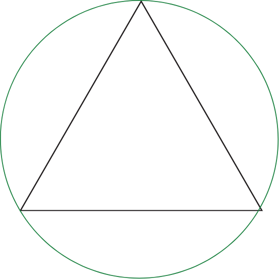 trójkąt równoboczny wpisany w okrąg oraz opisany na trójkącie