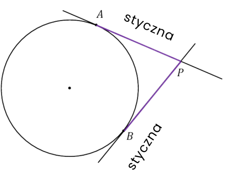 Jeśli A i B są styczne do okręgu i przecinają się w punkcje P to |PA| i |PB| mają taką samą długość