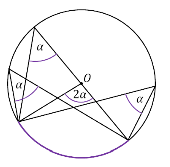 Kąt wpisany (a) w okręgu to kąt, którego wierzchołek leży na okręgu, a ramiona są cięciwami okręgu.